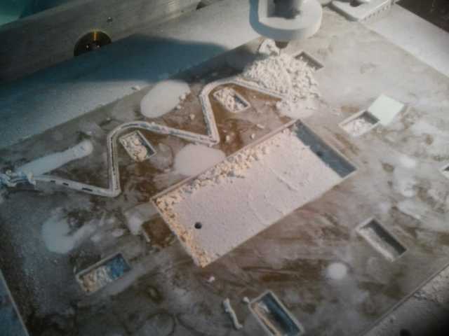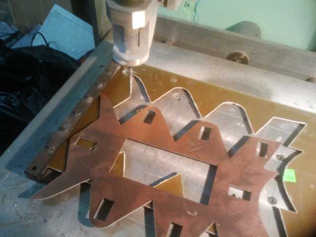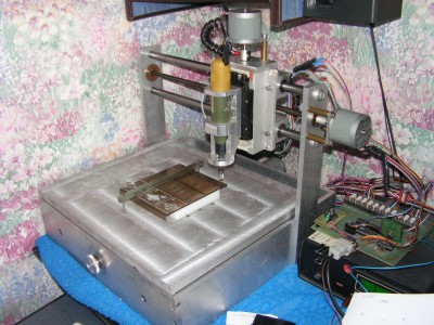 Podstawowym surowcem użytym do konstrukcji jest aluminium - ogranicza znacznie wagę - ale niestety ma swoją cenę. Podstawa o wymiarach 430x430 mm, co jeszcze pozwala zakwalifikować do urządzeń przenośnych. Wózek górny i dolny osadzony jest na prowadnicach stalowych 18 mm + 4 niezależne łożyska liniowe na wózek celem ograniczenia oporów i likwidacji luzu. Jako napęd zastosowałem śrubę z gwintem prostokątnym o skoku 4,5 mm na obrót / trzyzwojowa - na plus dodać należy ze z odzysku i spora prędkość wózka/ co daje dość kłopotliwy ale do przyjęcia posuw = 0,0225 mm/krok. Wózek pionowy to blat osadzony na 4 kulkach łożyskowych - rewelacja - też z odzysku - do blatu przymocowana jest głowica robocza - obecnie MICROMOT 50 - około 20000 obr. Jako napęd wózków pracują trzy slniki 4,1V/1,1A o rozdzielczości 200 krok/obr, i tu drobna uwaga którą odkryłem trochę późno - silniki kupujemy na jak najniższe napięcie - zyskamy na sile przy wyższych obrotach. Jako wyłączniki pozycji startowej i końcowej zastosowałem czujniki optyczne - no i zostały mi jeszcze 4 obwody do 0,5A obecnie niezagospodarowane - ale to będzie pewnie oświetlenie, odkurzacz, chłodzenie. Jak widać sporo jeszcze drobiazgów do zrobienia, ale wszystko w swoim czasie. Orientacyjny koszt konstrukcji widocznej na obrazku /komplet materiałów / około 500 zł - nie najtaniej ale do przyjęcia.