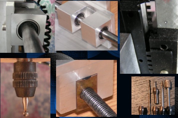 Wrzeciono - to już tylko problem finansowy. Ja mam PROXXON-a MICROMOT 50 - jego podstawową zaletą jest cena / około 130 zł / i to już tyle zalet - ale jeżeli maszyna ma być dla amatora, modelarza mającego czas na obróbkę jest to bardzo dobry wybór. Dla profesjonalisty i przy sporej eksploatacji polecane by było wrzecionko na porcelanowych łożyskach o mocy około 600 W. Mikromocik ma zaledwie około 60 W, mimo to stosunek ceny do możliwości to rewelacja... Dodatkowo na korzyść przemawia napięcie zasilania 12V / choć tak naprawdę to max przy 18 V / prosto z zasilacza PC.